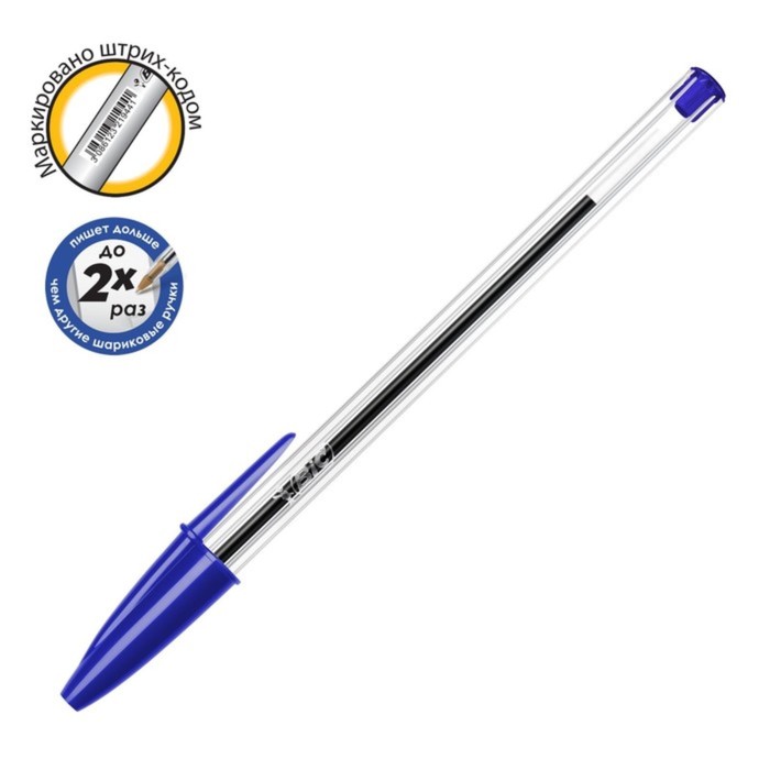 Ручка шариковая, чернила синие, 1.0 мм, среднее письмо, прозрачный корпус, BIC Cristal Original — Характеристики