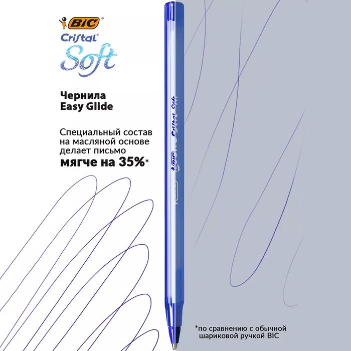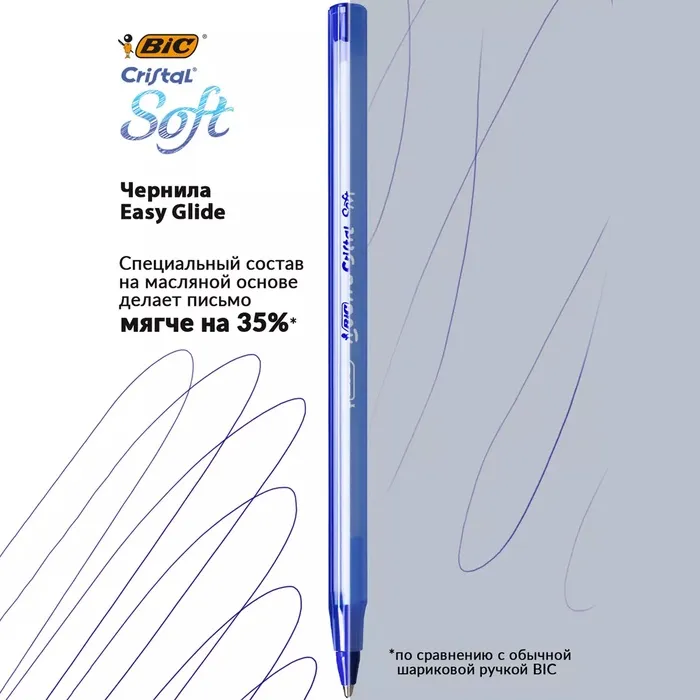 С тех пор компания BIC никогда не прекращала внедрять инновации, чтобы сделать результат работы своих ручек ещё более совершенным. Пишущий узел диаметром 1.2 мм создает линии средней толщины 0.35 мм. Для BIC Cristal Soft компания разработала специальные чернила Easy Glide на масляной основе, которые делают ваше письмо на 35% мягче, чем с обычной шариковой ручкой BIC.