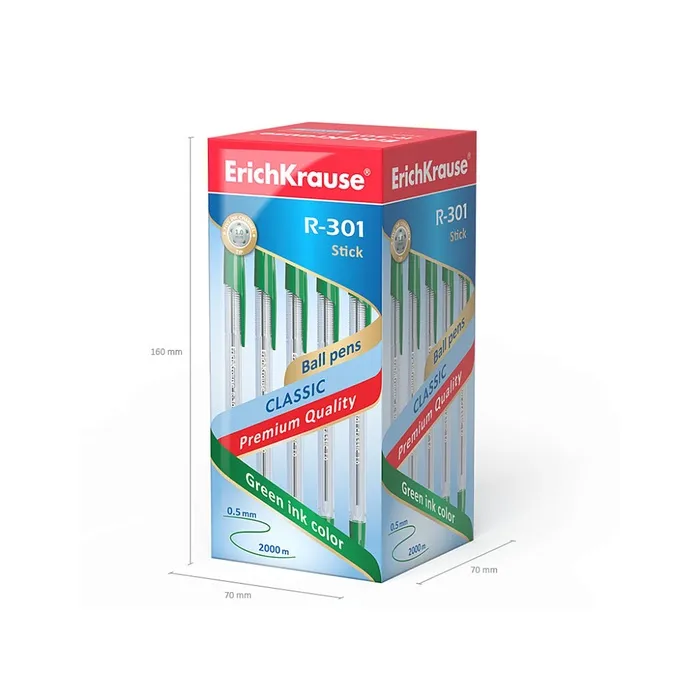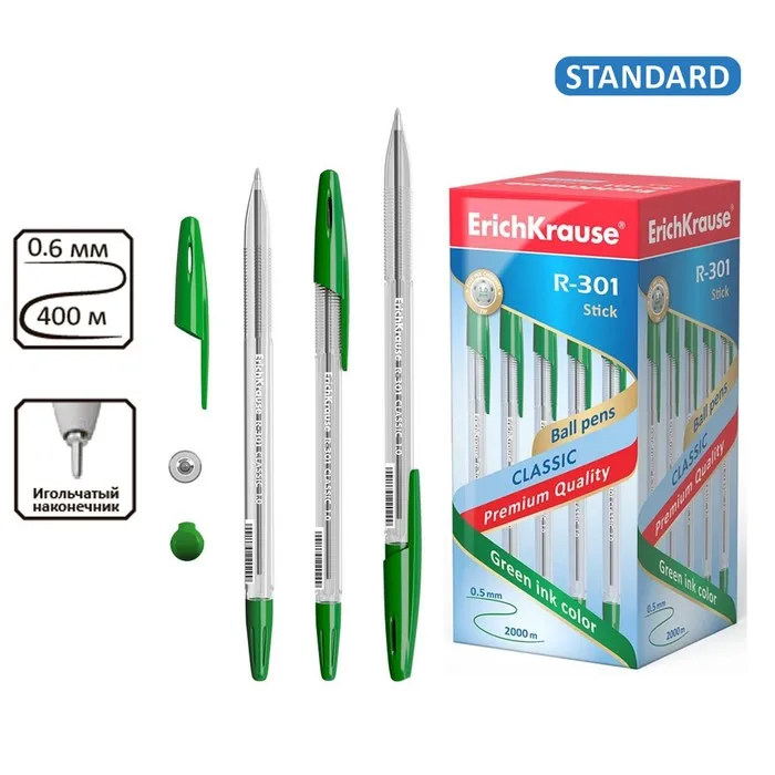 Классическая шариковая ручка Stick со стандартным типом пишущего узла и заменяемым стержнем. Ручка имеет прозрачный шестигранный корпус с удобной профилированной грип-зоной и вентилируемый колпачок. Цвет колпачка и заглушки соответствует цвету чернил. 5-канальный пишущий узел с диаметром шарика 1.0 мм в сочетании с быстросохнущими чернилами обеспечивает мягкое и комфортное письмо. Длина непрерывной линии составляет 2000 м при толщине 0.5 мм. Модель R-301 Classic 1.0 Stick имеет узнаваемую запатентованную форму и стала абсолютным бестселлером в ассортименте шариковых ручек ErichKrause® более чем в пятидесяти странах мира.