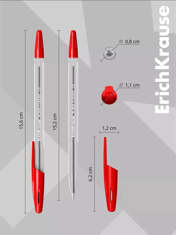 Классическая шариковая ручка Stick со стандартным типом пишущего узла и заменяемым стержнем. Ручка имеет прозрачный шестигранный корпус с удобной профилированной грип-зоной и вентилируемый колпачок. Цвет колпачка и заглушки соответствует цвету чернил. 5-канальный пишущий узел с диаметром шарика 1.0 мм в сочетании с быстросохнущими чернилами обеспечивает мягкое и комфортное письмо. Длина непрерывной линии составляет 2000 м при толщине 0.5 мм. Модель R-301 Classic 1.0 Stick имеет узнаваемую запатентованную форму и стала абсолютным бестселлером в ассортименте шариковых ручек ErichKrause® более чем в пятидесяти странах мира.