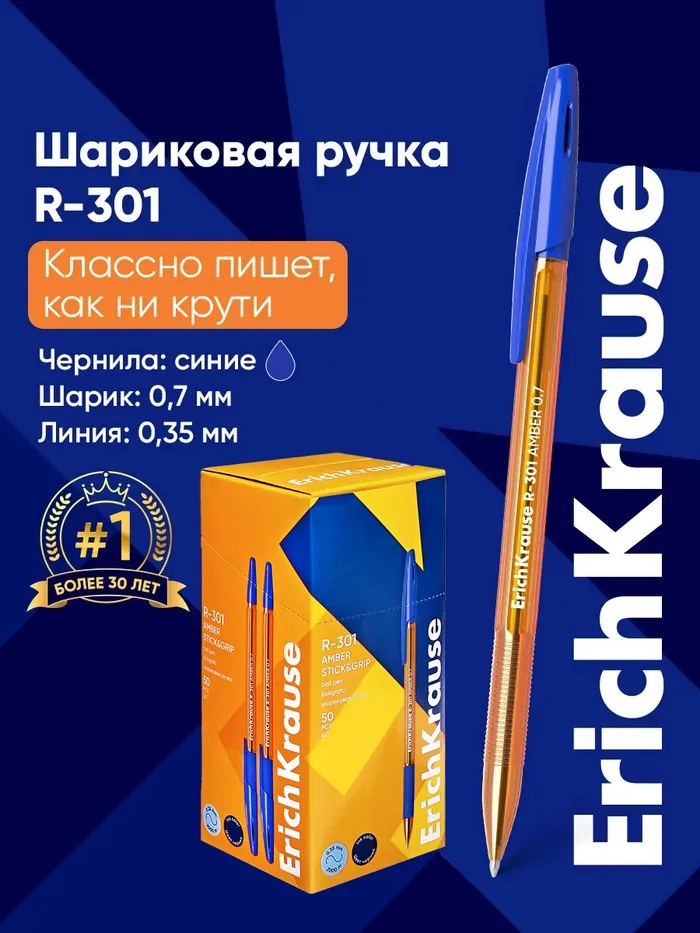 - Модель R-301 Amber 0.7 Stick&Grip имеет узнаваемую запатентованную форму и стала одним из бестселлеров в ассортименте шариковых ручек ErichKrause® более чем в пятидесяти странах мира.