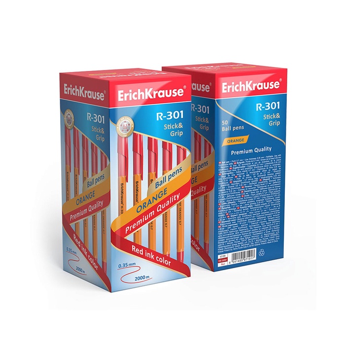 Длина непрерывной линии составляет 2000 м при толщине 0.35 мм, что является одним из лучших показателей в своей категории. Модель R-301 Orange 0.7 Stick & Grip имеет узнаваемую запатентованную форму и стала одним из бестселлеров в ассортименте шариковых ручек ErichKrause® более чем в пятидесяти странах мира.