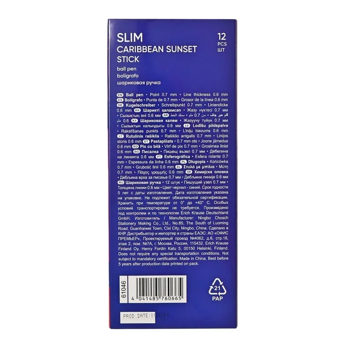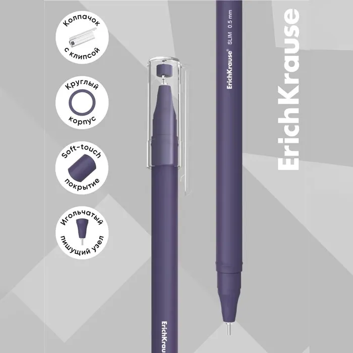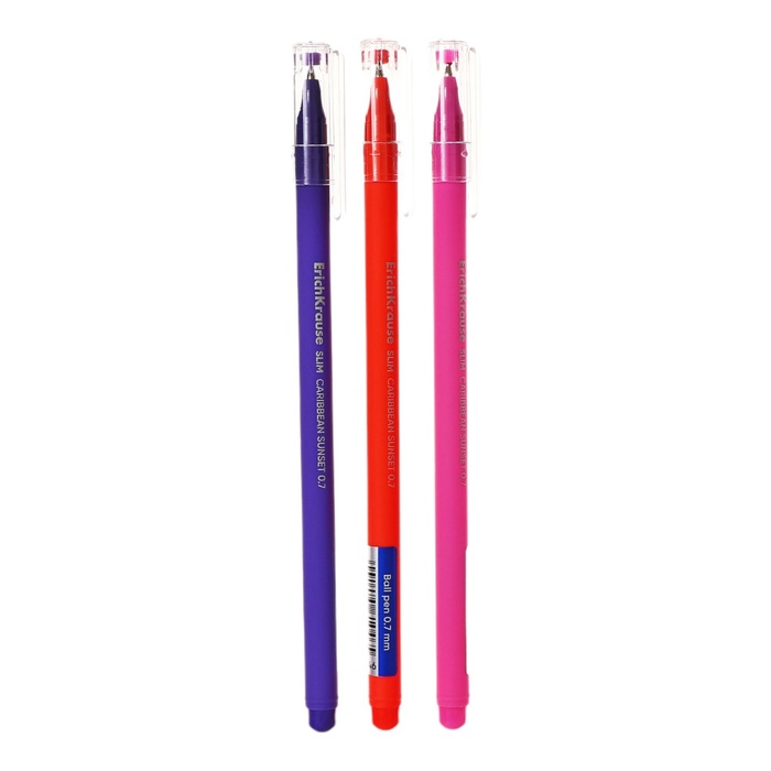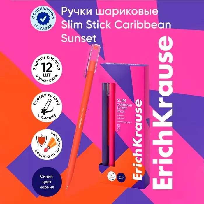 Ручка шариковая ErichKrause Slim Stick Caribbean Sunset, игольчатый узел 0.7 мм, чернила синие, покрытие Soft Touch, МИКС — Характеристики