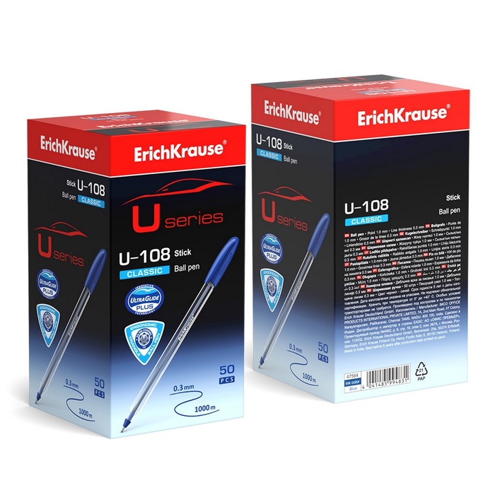 Ручка шариковая ErichKrause U-108 Classic Stick, игольчатый узел 1.0 мм, чернила синие, ультра-мягкое письмо — Характеристики
