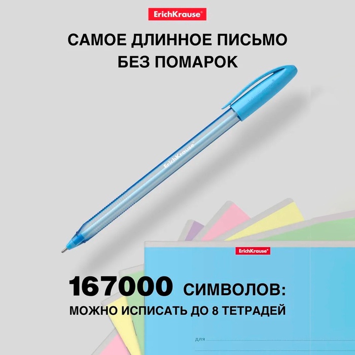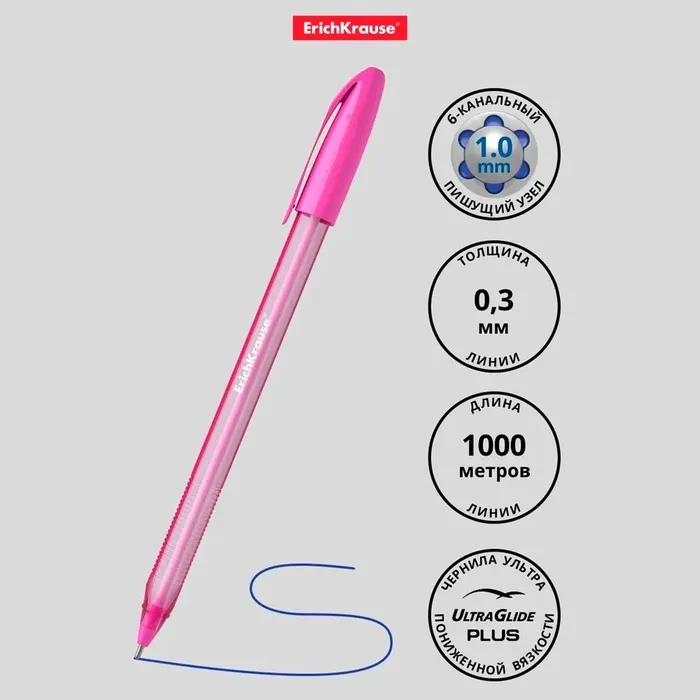 Ручка шариковая ErichKrause U-108 Spring Stick, игольчатый узел 0.7 мм, чернила синие, супермягкое письмо, МИКС — Характеристики