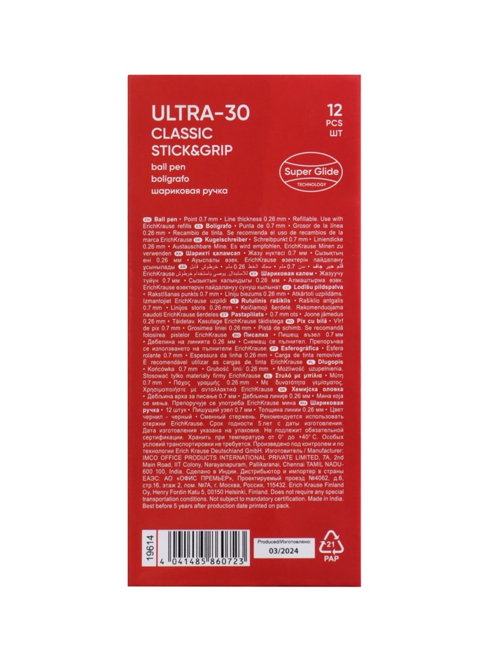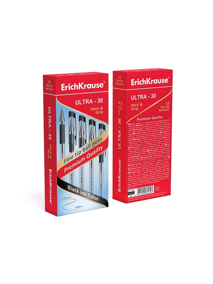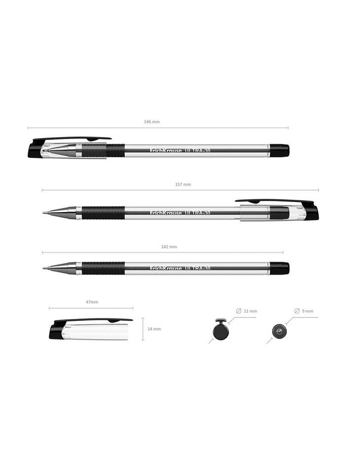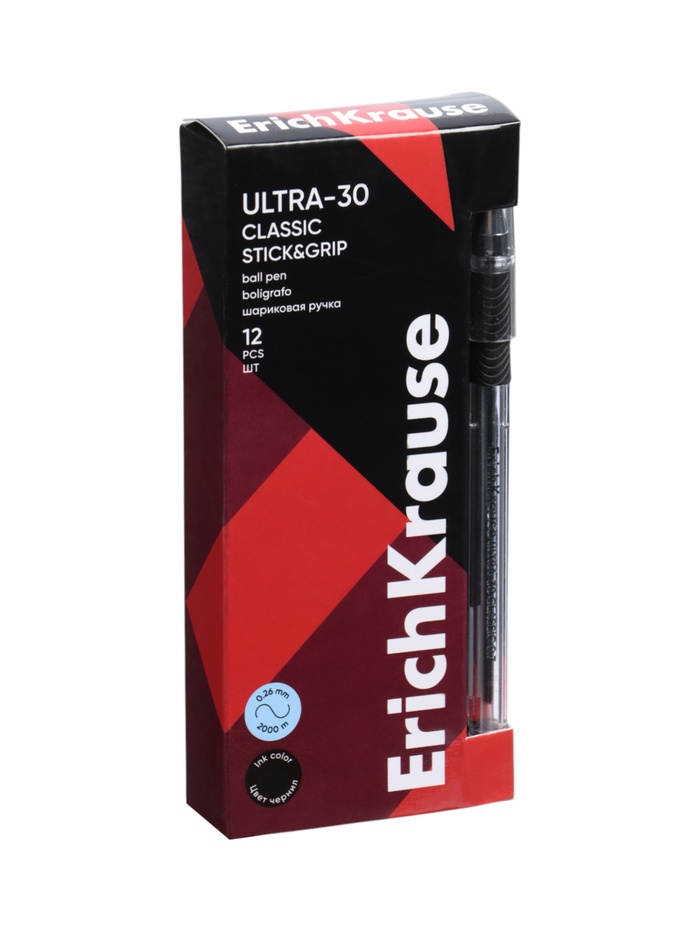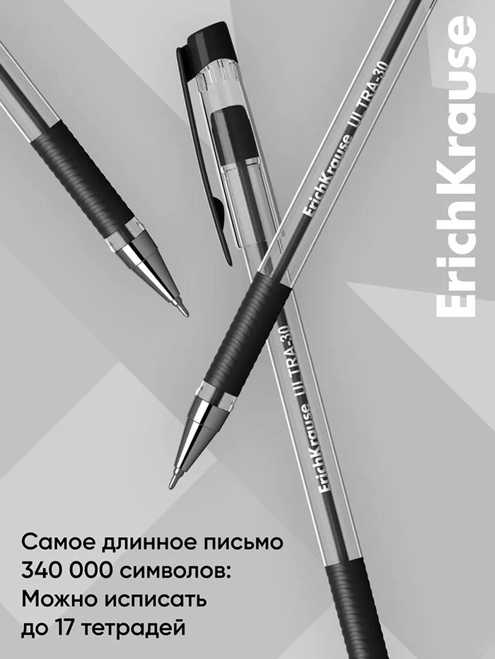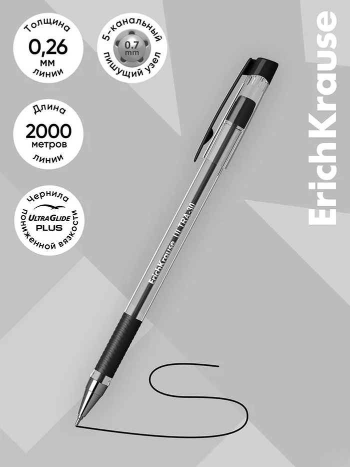 Ручка шариковая ErichKrause. ULTRA-30, чёрный стержень, игольчатый узел 0.7 мм, резиновый упор — Характеристики