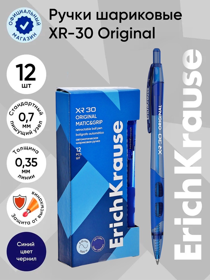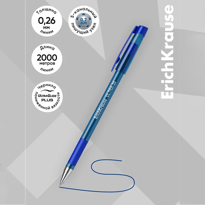 Ручка шариковая ErichKrause ULTRA-30 Original, узел 0.7 мм, чернила синие, длина письма 1000 метров — Характеристики