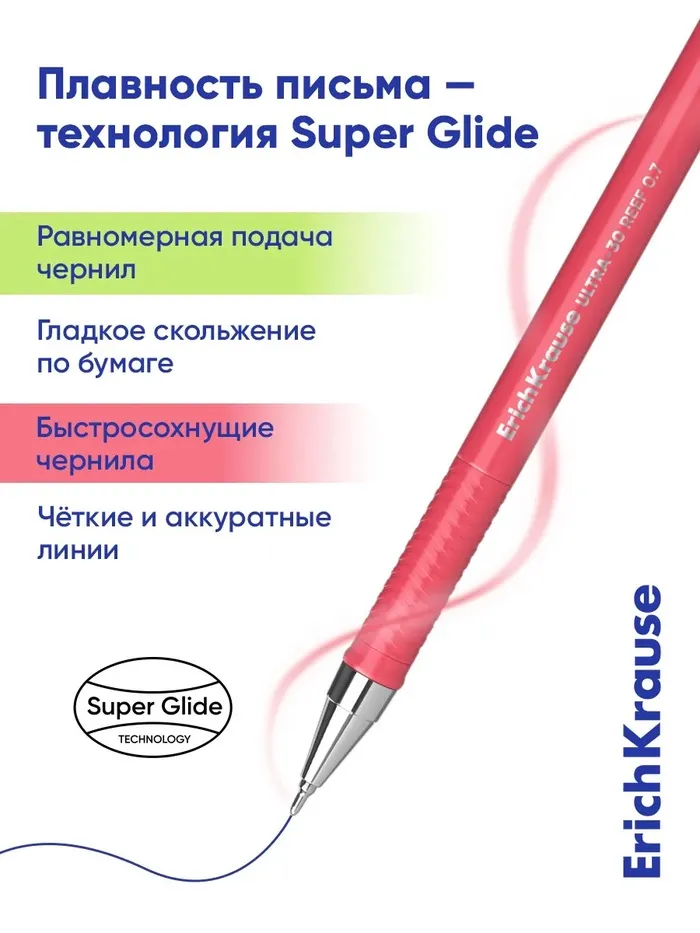 Ручка шариковая ErichKrause ULTRA-30 Stick&Grip Reef, 0.7 мм, тонированная, синяя — Характеристики