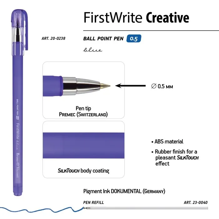 Ручка шариковая Firstwrite Creative, узел 0.5 мм, синие чернила, матовый корпус Silk Touch, МИКС — Характеристики