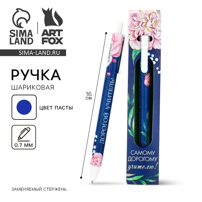 Ручка шариковая, матовая в конверте автоматическая, 0.7 мм «Самому дорогому учителю!» — Характеристики