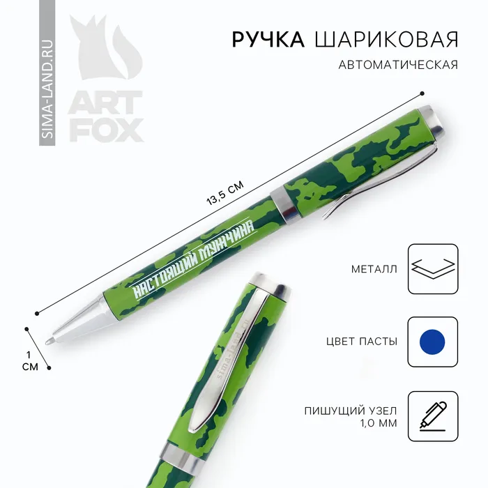 Ручка шариковая, металл, синяя паста 1.0 мм «Настоящий мужчина» — Характеристики