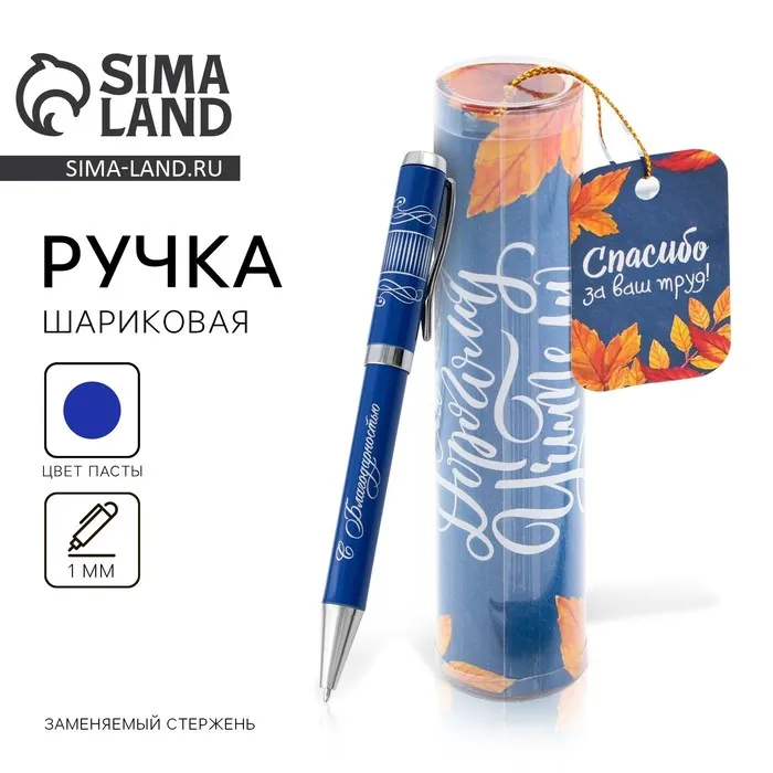 Ручка шариковая металлическая в тубусе, синяя паста, 1.0 мм «Самому дорогому учителю» — Характеристики