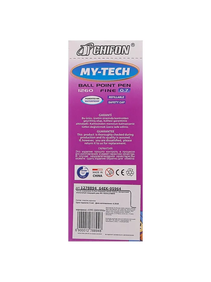 толщина линии письма составляет 0,7 мм, что обеспечивает чёткость и аккуратность текста;стержень ручки имеет насыщенный синий цвет, который хорошо виден на бумаге любого оттенка;корпус ручки выполнен из прозрачного пластика, что придаёт ей современный и лаконичный вид;игольчатый пишущий узел обеспечивает плавное и равномерное нанесение чернил на бумагу, делая процесс письма максимально комфортным.Благодаря своей универсальности и надёжности, ручка MY-TECH станет вашим верным спутником в любых начинаниях. Она подойдёт как для студентов и школьников, так и для офисных работников и творческих личностей.