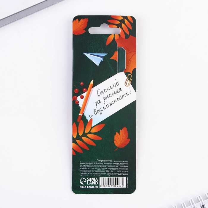 Ручка шариковая на открытке с фигурным клипом, пластик, синяя паста, 1.0 мм «С днем учителя» — Характеристики