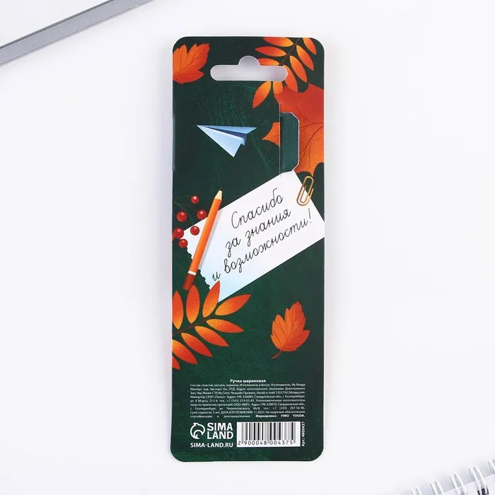 Ручка шариковая на открытке с фигурным клипом, пластик, синяя паста, 1.0 мм «С днем учителя» — Характеристики