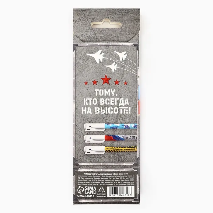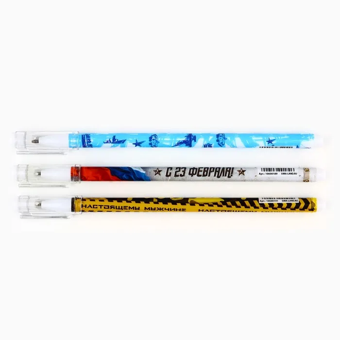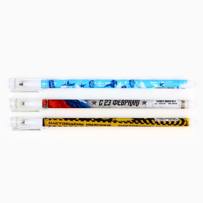 Ручка шариковая, набор из 3 шт., пластик с колпачком, синяя паста 0.5 мм «23 февраля» — Характеристики