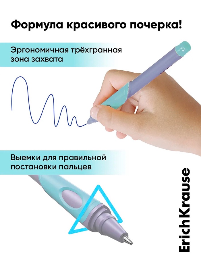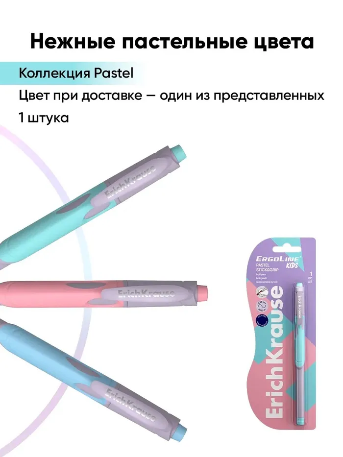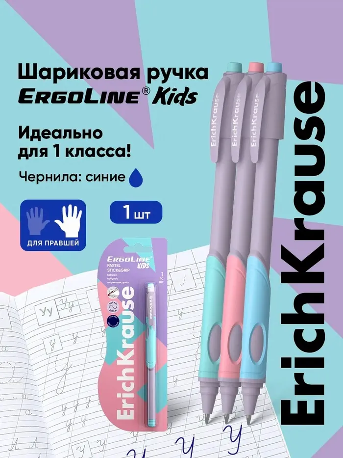 Ручка шариковая первоклассника, ErichKrause ErgoLine Stick&Grip Pastel, 0.5 мм, блистер, синяя — Характеристики