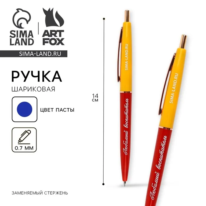 Ручка шариковая, пластик автоматическая синяя паста 0.7 мм «Любимый воспитатель» — Характеристики
