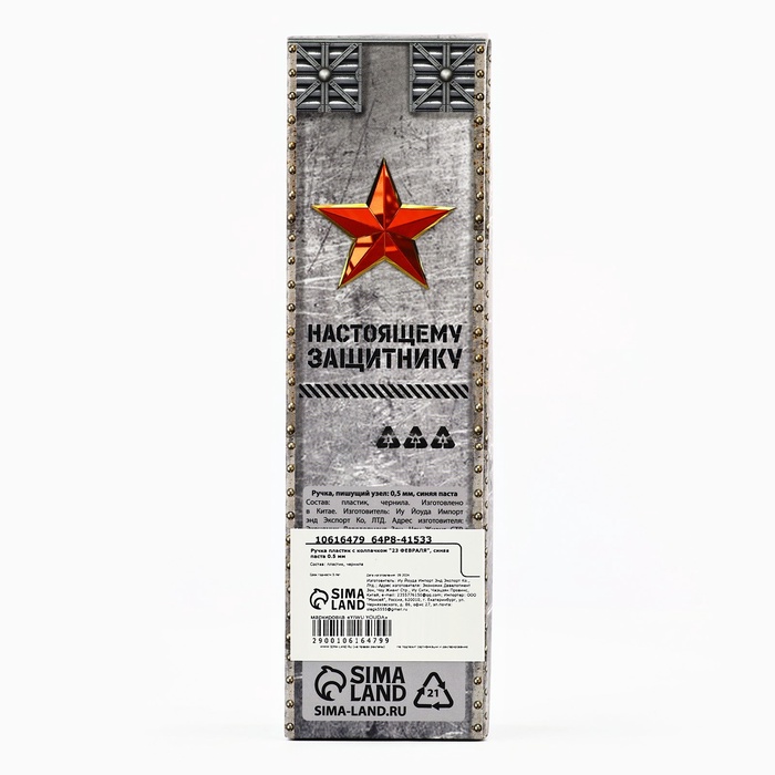 Ручка шариковая, пластик с колпачком, синяя паста, 0.5 мм «23 февраля» — Характеристики