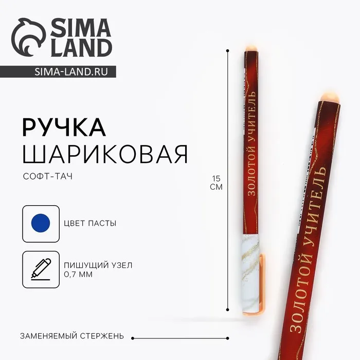 Ручка шариковая, пластик с колпачком софт-тач, синяя паста 0.7 мм «Золотой учитель» — Характеристики