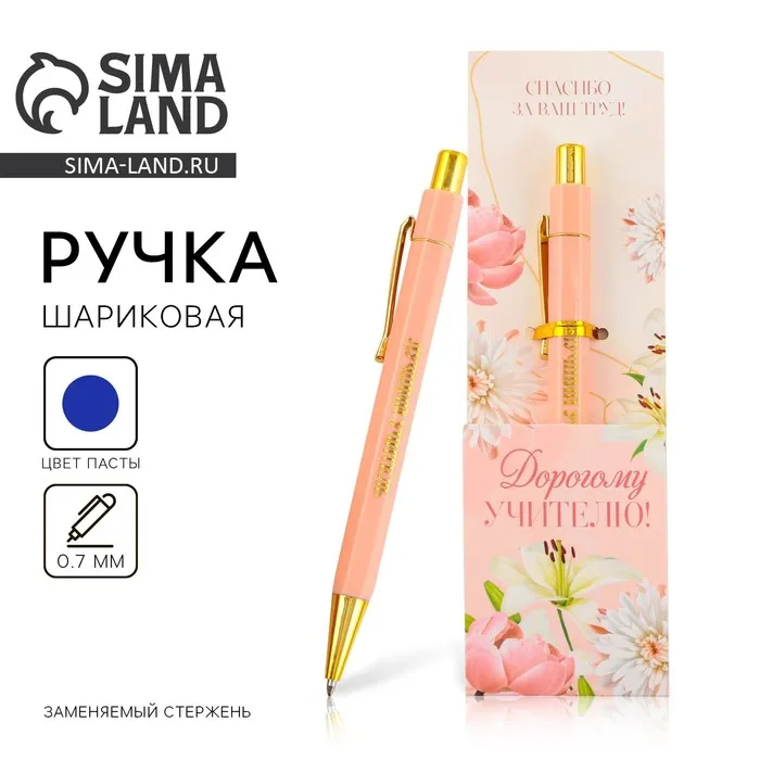 Ручка шариковая, пластик, с тиснением на корпусе, синяя паста, 0.7 мм. «Дорогому учителю !» — Характеристики