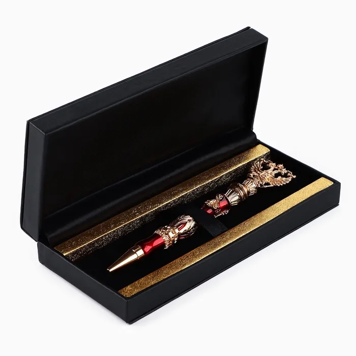 Ручка шариковая подарочная с гербом в футляре, металл, пишущий узел 1.0 мм, синяя паста — Характеристики