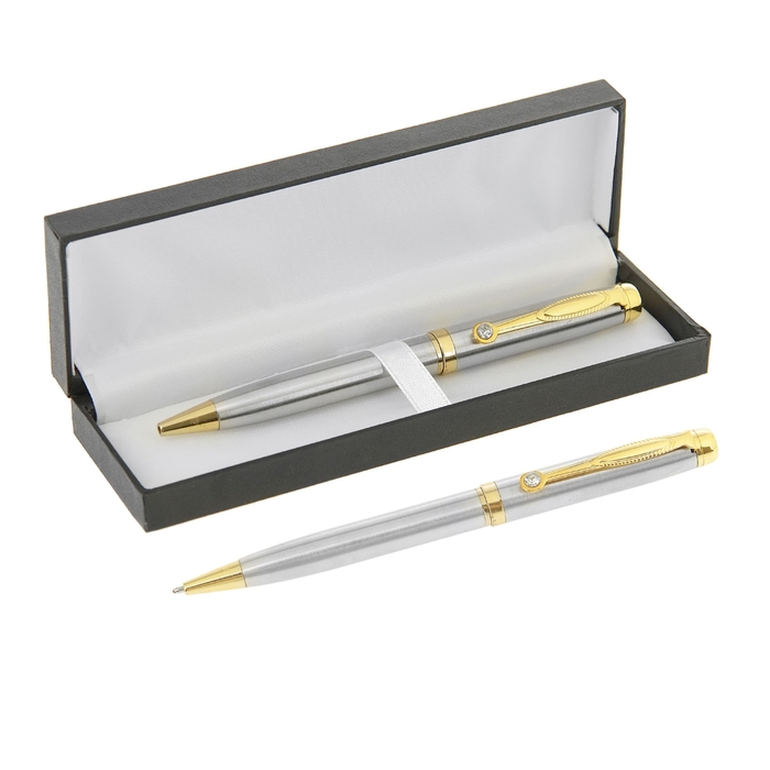 Ручка шариковая, подарочная, в кожзам футляре, поворотная, «Файт», серебристый/золотой — Характеристики