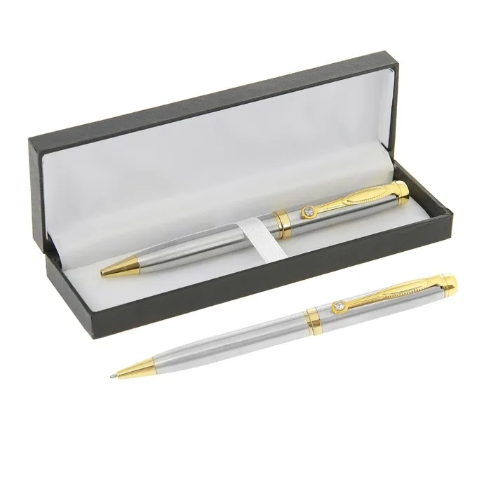 Шариковая подарочная ручка в футляре из кожзама – продемонстрирует ваш безупречный вкус и подчеркнёт статус своего обладателя. Обтекаемый металлический корпус декорирован блестящими деталями, а футляр имитирует натуральную кожу.