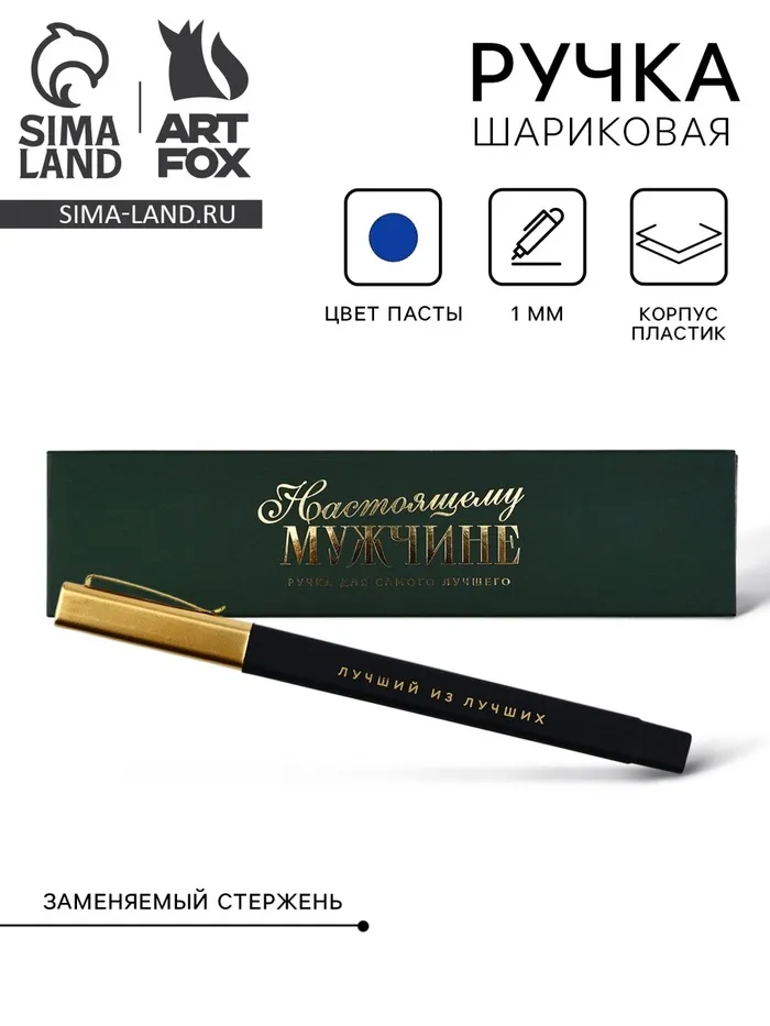 Ручка шариковая, подарочная в пенале, синяя паста, 1.0 мм «Настоящему мужчине» — Характеристики