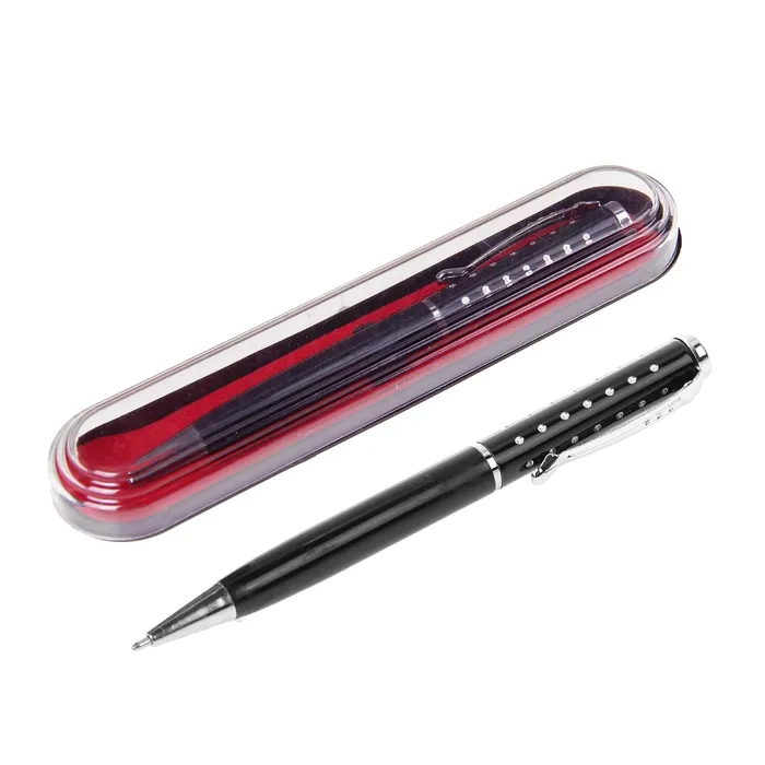 Шариковая подарочная ручка в пластиковом футляре "Бизнес", черный с серебром – продемонстрирует ваш безупречный вкус и подчеркнёт статус своего обладателя. Обтекаемый металлический корпус декорирован блестящими деталями. Приобрести эту качественную и надёжную ручку в пластиковом футляре можно оптом по очень привлекательной цене.