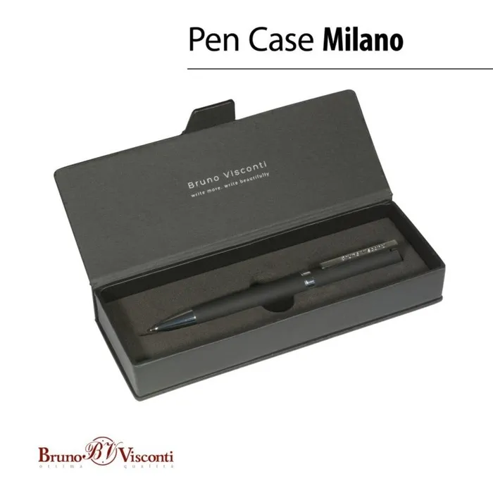 Ручка шариковая поворотная, 1.0 мм, BrunoVisconti MILANO, стержень синий, металлический корпус Soft Touch чёрный, в футляре из экокожи — Характеристики