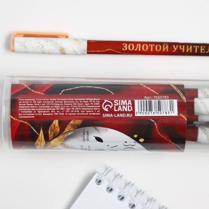 Ручка шариковая с колпачком и нанесением soft-touch, синяя паста 0.7 мм «Золотому учителю» — Характеристики