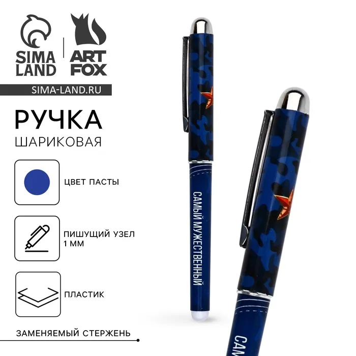 Ручка шариковая, с колпачком, синяя паста, 1.0 мм «Самый мужественный. 23 февраля» — Характеристики