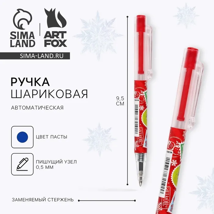 Ручка шариковая, синяя паста, 0.5 мм, автоматическая «Новогодняя почта» — Характеристики