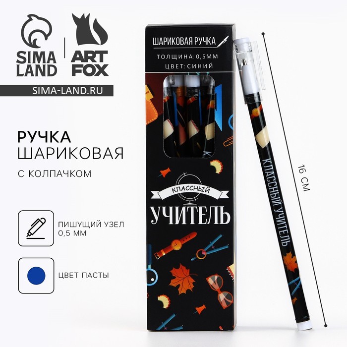 Ручка шариковая, синяя паста, 0.5 мм, пластик, с колпачком «Классный учитель» — Характеристики
