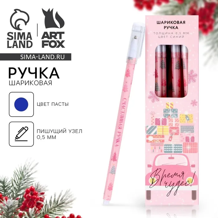 Ручка шариковая, синяя паста, 0.5 мм, пластик, с колпачком «Новый год: Время чудес!» — Характеристики