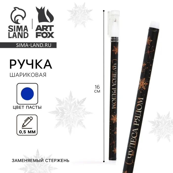 Ручка шариковая, синяя паста, 0.5 мм, с колпачком, пластик «Новый год: Чудеса рядом» — Характеристики