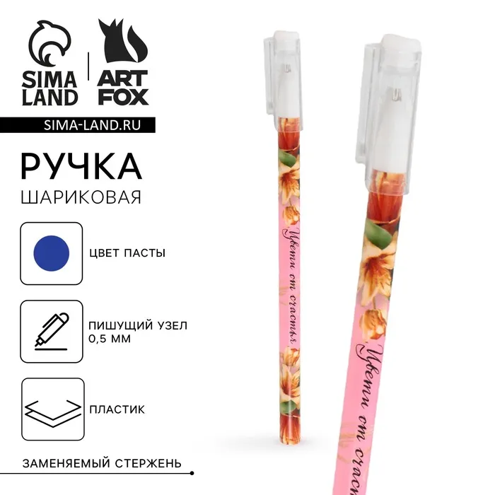Ручка шариковая синяя паста 0.5 мм с колпачком «Цвети от счастья» пластик — Характеристики