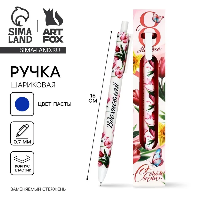 Ручка шариковая, синяя паста, 0.7 мм, автоматическая, матовая «8 МАРТА» — Характеристики