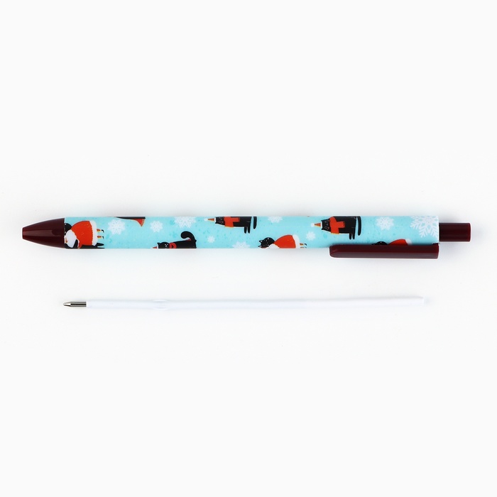 Ручка шариковая, синяя паста, 0.7 мм, автоматическая, матовая «Новый год: Кот Мороз» — Характеристики