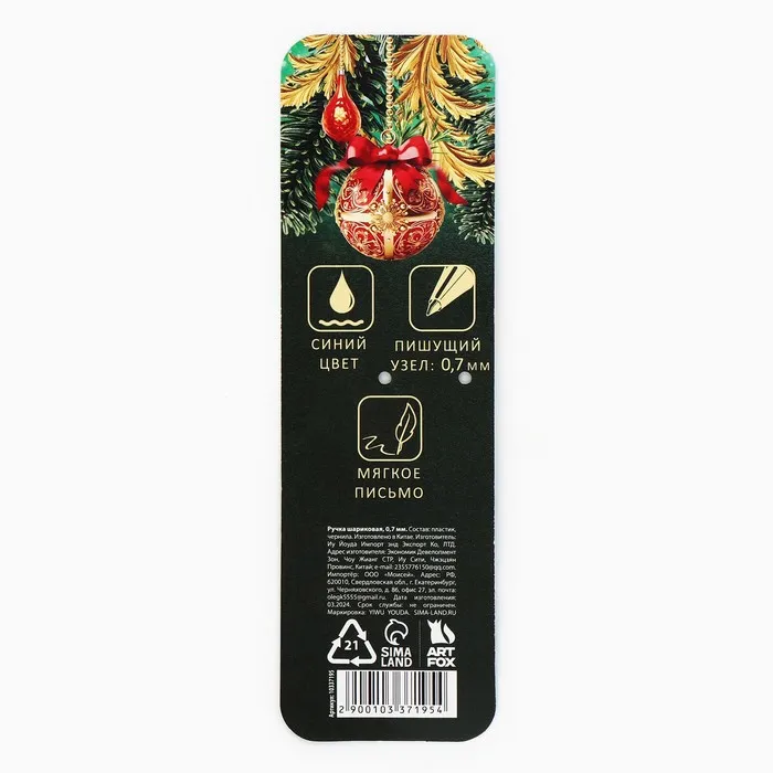 Ручка шариковая, синяя паста, 0.7 мм, автоматическая «Волшебного Нового года» — Характеристики