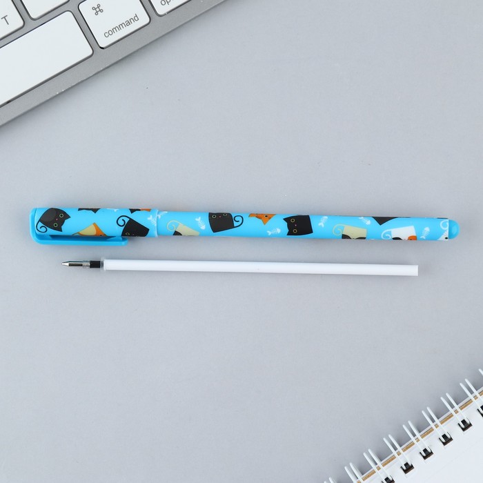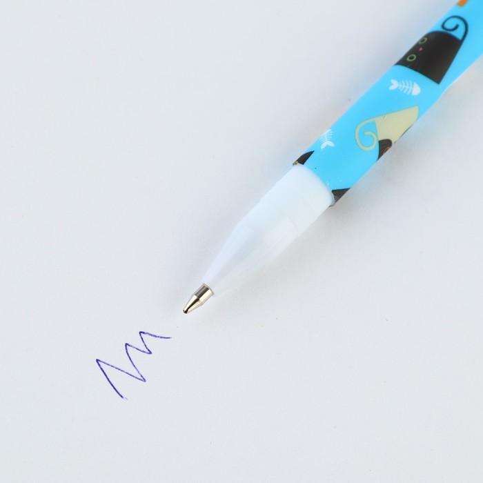 Ручка шариковая, синяя паста 0.7 мм «Котики»