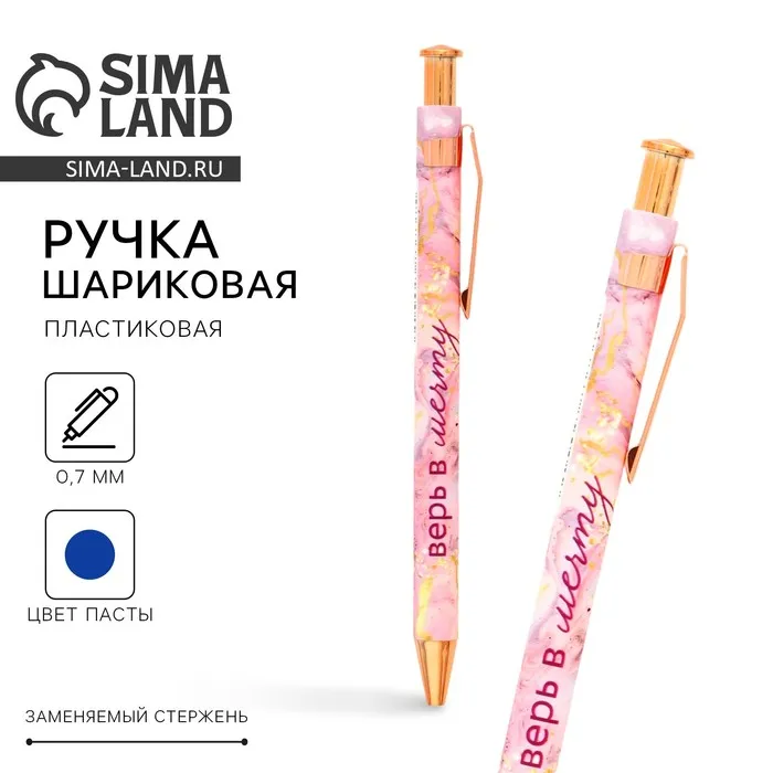 Ручка шариковая, синяя паста, 0.7 мм, пластик «Верь в мечту» — Характеристики