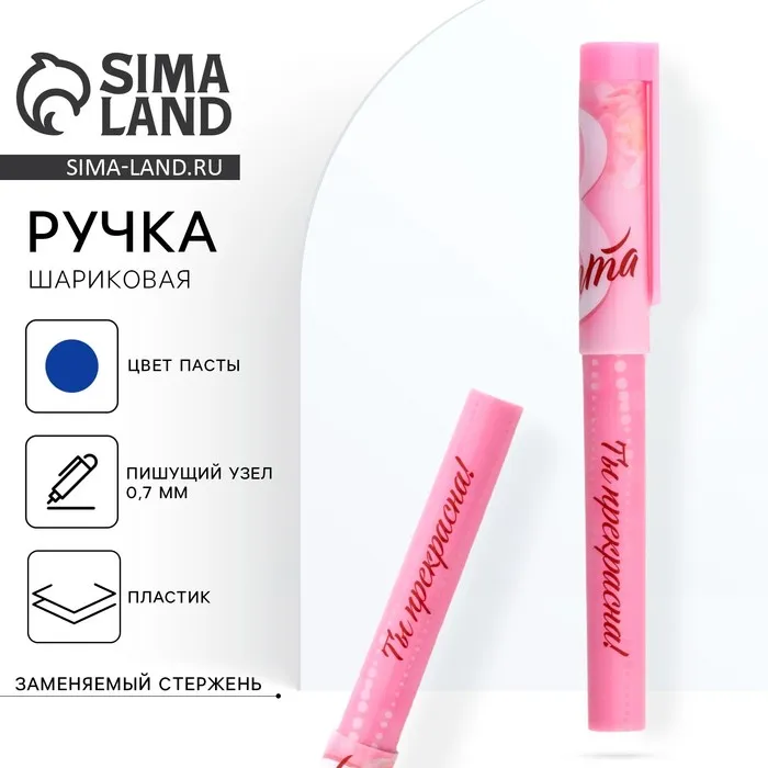 Ручка шариковая, синяя паста, 0.7 мм, с колпачком, пластик «8 Марта» — Характеристики