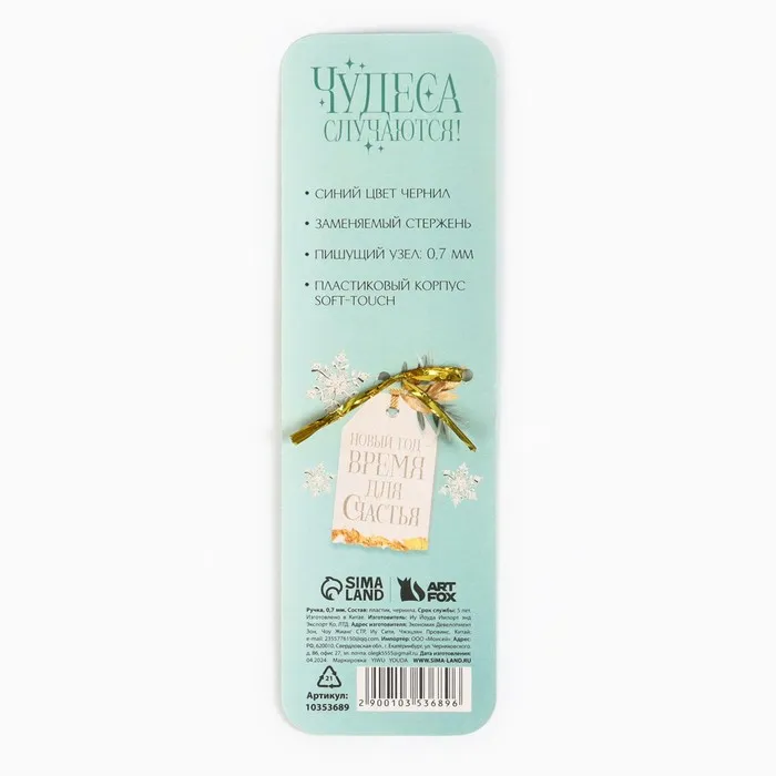 Ручка шариковая, синяя паста, 0.7 мм, с колпачком, пластик « С Новым годом!» — Характеристики