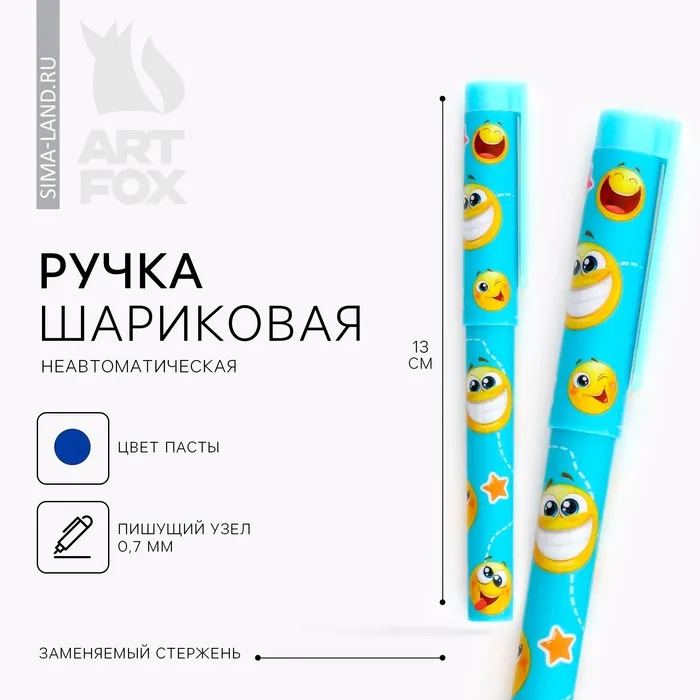 Ручка шариковая, синяя паста 0.7 мм, с колпачком, пластик «Смайлики» — Характеристики