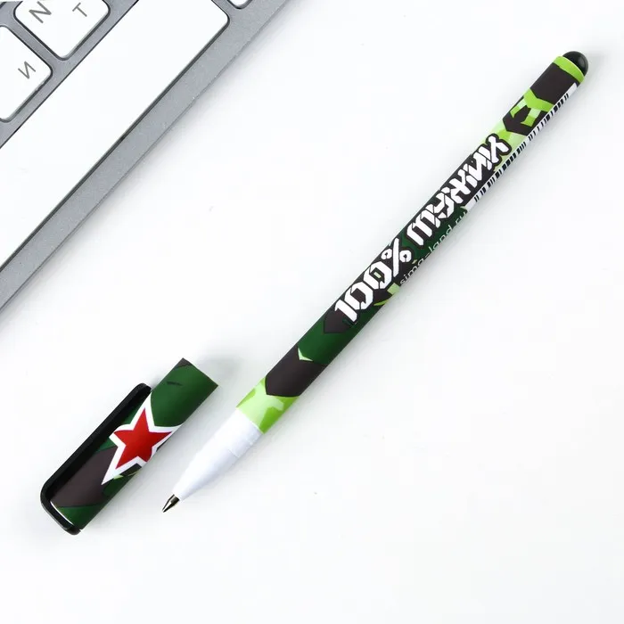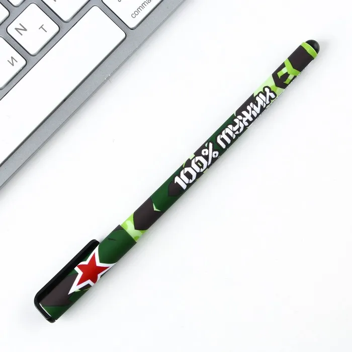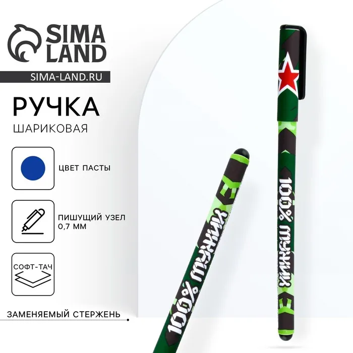 Ручка шариковая, синяя паста 0.7 мм с колпачком пластик софт-тач «100% мужику» — Характеристики