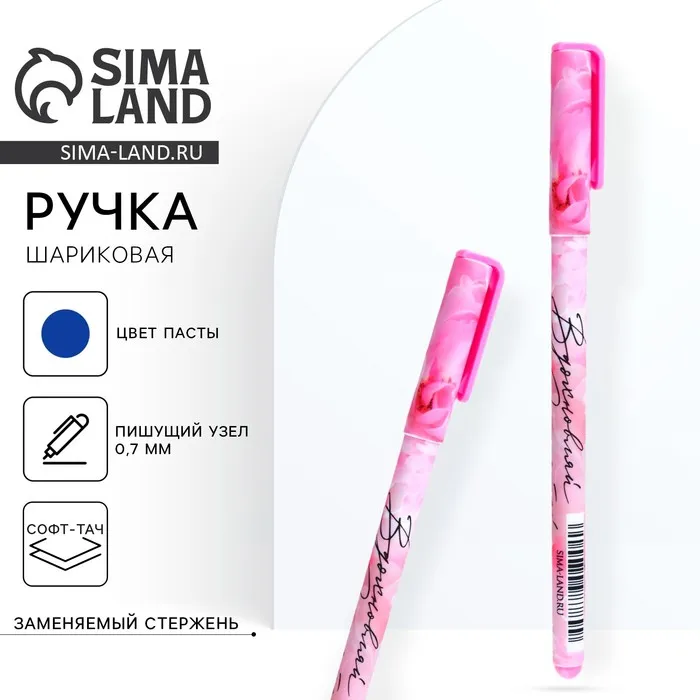 Ручка шариковая, синяя паста, 0.7 мм, с колпачком, пластик софт-тач «Самой нежной» — Характеристики