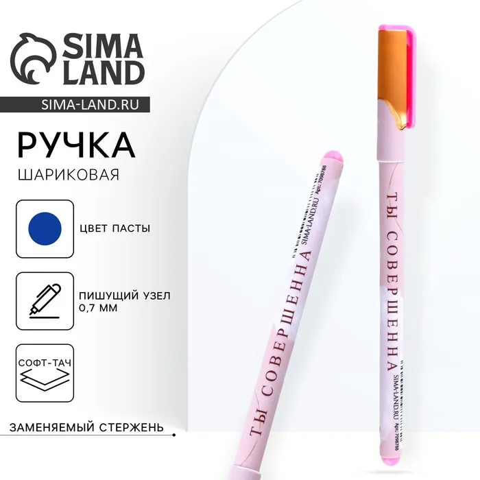 Ручка шариковая, синяя паста, 0.7 мм, с колпачком, пластик софт-тач «Ты совершенна» — Характеристики