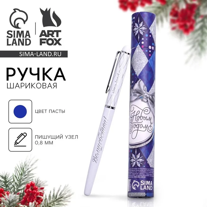 Ручка шариковая, синяя паста, 0,8 мм, металл, с колпачком «С Новым годом!» — Характеристики